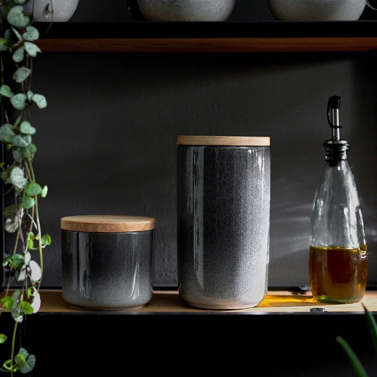 Keramik Vorratsdosen Misty Cliff 2er Set mit Holzdeckel - Hellgrau, Dunkelgrau, Braun