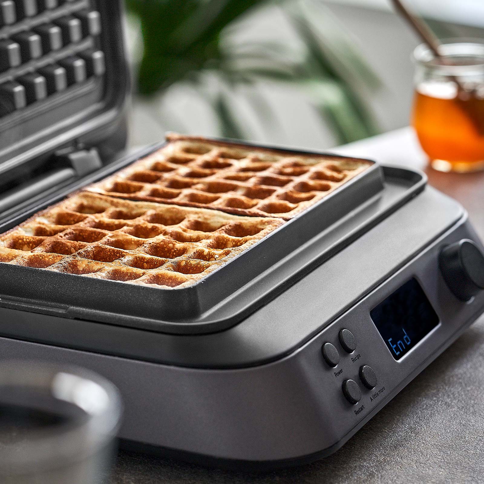 Deine Waffeln haben noch nicht genügend Farbe abbekommen? Gönn deinen Teigschätzen „A little more“-Funktion 20 Extrasekunden auf dem heißen Waffeleisen.